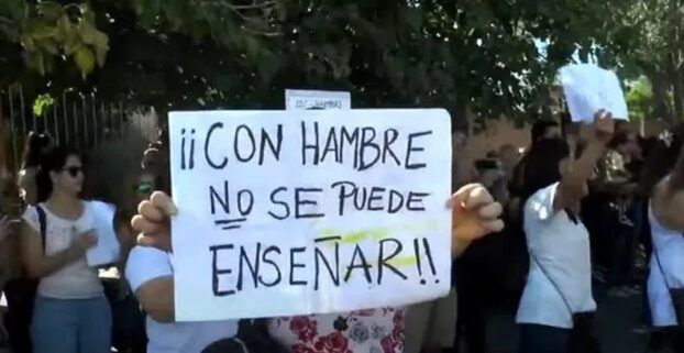 “Escuelazo” por la reapertura de las paritarias, mientras la celeste reivindica el ajuste del gobierno.