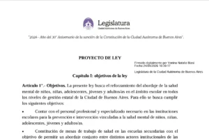 [Legislatura] Proyecto de Ley para el reforzamiento del abordaje de la salud mental en el ámbito escolar