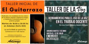 Tal es así, que las dos ofertas formativas actuales fueron acercadas al sindicato por Tribuna Docente. Se trata del “Taller de cuidado de la voz para el trabajo docente”, que cuenta con una cantidad importante de docentes que lo han cursado y lo cursan; y el Taller-Escuela de guitarra “El Guitarrazo”, de gran trascendencia que funciona hace años en la sede sindical y es de cursada gratuita para docentes afiliados.
